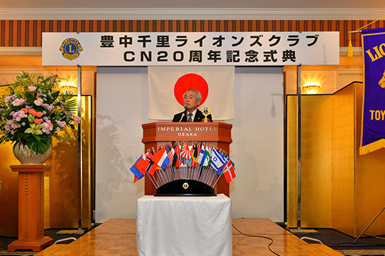 2016年2月27日、帝国ホテル大阪においてCN20周年記念式典を挙行いたしました。1996年5月9日認証式を執り行った同ホテルでCN20周年を開催できましたこと、豊中市長ほか各団体より多数のご来賓をいただき、ライオンズクラブ関係では335複合地区元議長の皆様・335-B地区名誉顧問ほか地区役員・地区委員の皆様、ブラザークラブの皆様が祝福にご臨席を賜り総勢200名近くの盛会となりました。皆様へ心より御礼を申し上げます。