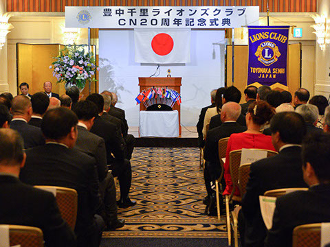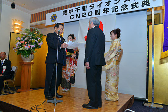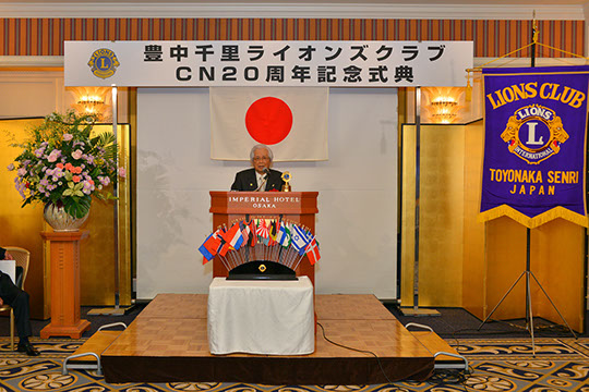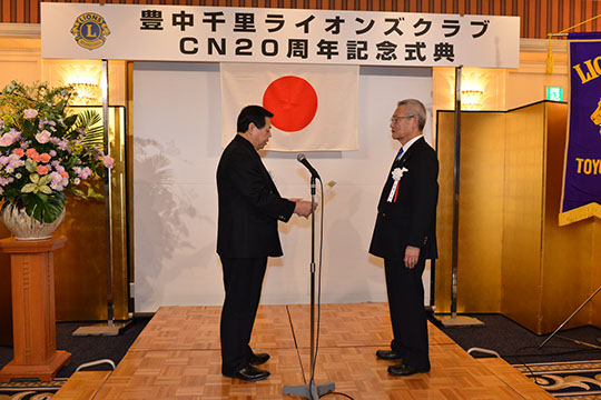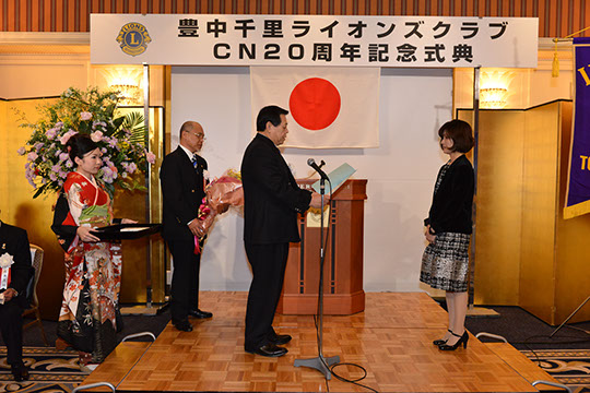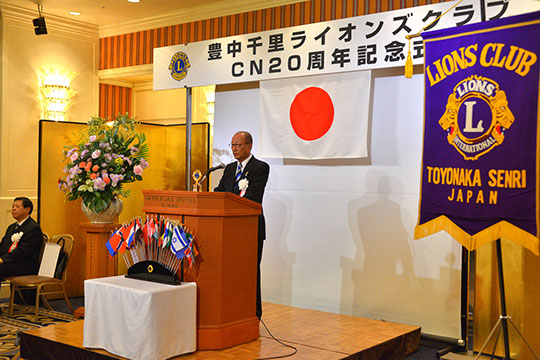 2016年2月27日、帝国ホテル大阪においてCN20周年記念式典を挙行いたしました。1996年5月9日認証式を執り行った同ホテルでCN20周年を開催できましたこと、豊中市長ほか各団体より多数のご来賓をいただき、ライオンズクラブ関係では335複合地区元議長の皆様・335-B地区名誉顧問ほか地区役員・地区委員の皆様、ブラザークラブの皆様が祝福にご臨席を賜り総勢200名近くの盛会となりました。皆様へ心より御礼を申し上げます。