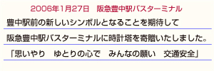 この時計塔が、豊中千里ライオンズクラブの結成10周年のメモリアルとして、また市民モラル向上のメモリアルとして広く豊中市民の皆様の心の拠り処となれば幸甚です |