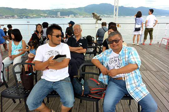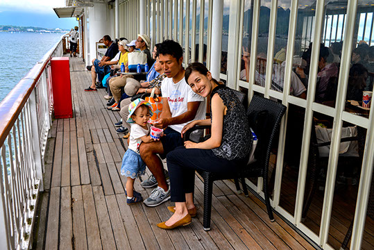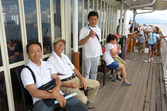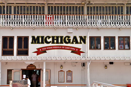 今回はミシガンで琵琶湖周航80分間のクルーズ〜船上の風は〜ほど温いためデッキよりエアコンで心地よい客室で楽しんでいる方が多かったような気もします。